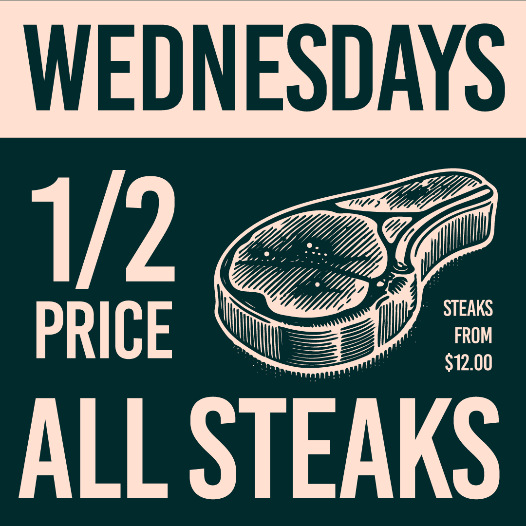 Half Price Steak – Includes Sirloin, Rump & Rib Eye (combo not included).